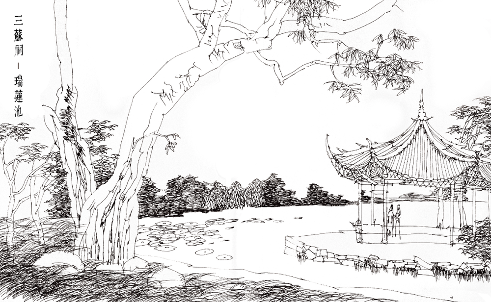 蘇家的園子人性而人情。一進(jìn)園子,兩棵高大的銀杏毅然挺立,遮天蔽日,這時(shí)講解員會(huì)說(shuō):“這兩棵樹(shù)都是雄樹(shù),只開(kāi)花不結(jié)果,是蘇軾蘇轍兩兄弟的象征……大家再轉(zhuǎn)身,背后有一棵千年的榕樹(shù),是父親蘇洵……”三棵樹(shù),三父子,左右攜手,前后顧盼,其情其勢(shì),動(dòng)人心魄!植物是造園的重要元素,也是主人品格和感情的寄托。在三蘇祠,一株荔枝可以掛滿東坡“猶作江南未歸客”的鄉(xiāng)愁,一株海棠可以浸透“泥污燕支雪”的傷感,一株橘樹(shù)可以寫(xiě)滿“吾性好種植”的本心,一根竹子可以充塞“無(wú)窮出清新”的真氣,一朵蓮花可以盛開(kāi)“湖光涵萬(wàn)象”的意境……一方園子就是一個(gè)人的生命世界。