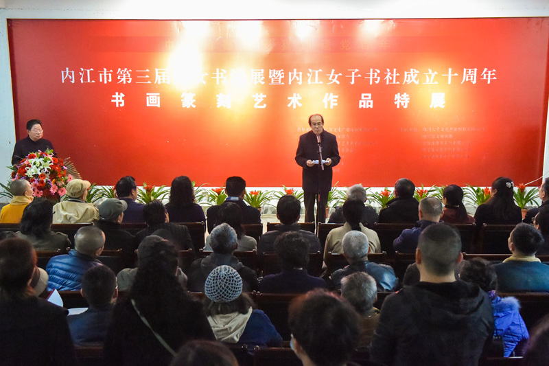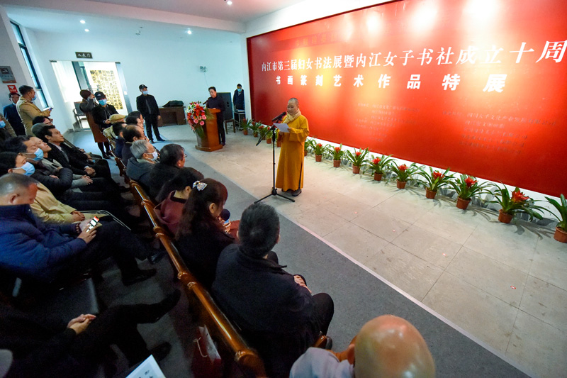 本凈在致辭中表示,我們生活在一個繁榮的時代,更生活在一個文化浸潤的內(nèi)江,肩負(fù)著為時代而書寫,為人民而歌的重任,更本能地承擔(dān)著傳承家風(fēng)、相夫教子的義務(wù)。她希望內(nèi)江女子書社要力克前行中的團(tuán)難,不忘初心,堅定文化自覺與自信,團(tuán)結(jié)廣大婦女書畫愛好者,培根鑄魂,明德律己,守正創(chuàng)新,為助力大千故里文化藝術(shù)建設(shè)新發(fā)展貢獻(xiàn)力量。