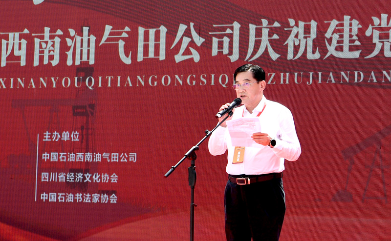 中國石油西南油氣田公司黨委常務(wù)副書記、工會(huì)主席趙厚川,中國書法家協(xié)會(huì)副主席、四川省文聯(lián)副主席、四川省書法家協(xié)會(huì)主席代躍,四川省社科聯(lián)理事、四川省經(jīng)濟(jì)文化協(xié)會(huì)會(huì)長魏蓉生,四川省書法家協(xié)會(huì)、四川省經(jīng)濟(jì)文化協(xié)會(huì)、中國石油書法家協(xié)會(huì)、長慶油田書法家協(xié)會(huì)等共計(jì)一百名書法家,西南油氣田公司相關(guān)部門、單位負(fù)責(zé)人參加活動(dòng)并出席啟動(dòng)儀式。