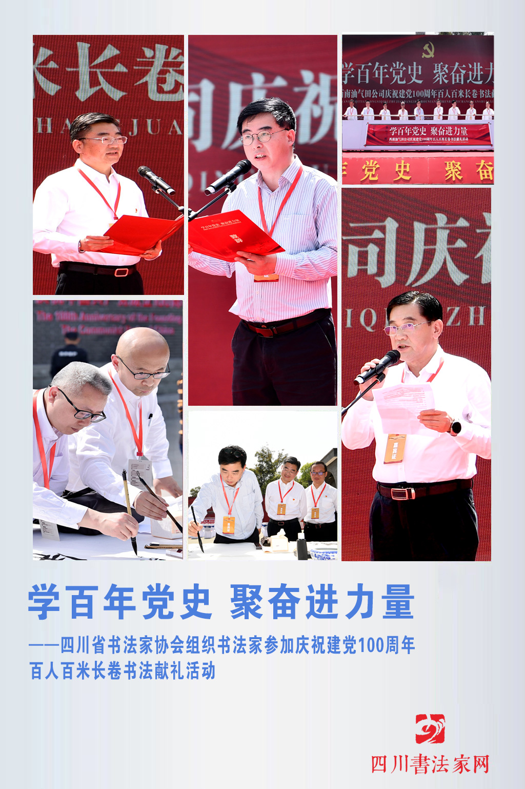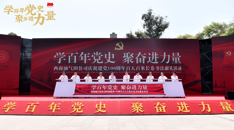 四川書法家網(wǎng)訊 3月27日,四川省書法家協(xié)會(huì)組織書法家參加西南油氣田公司、四川省經(jīng)濟(jì)文化協(xié)會(huì)、中國石油書法家協(xié)會(huì)、四川省書法家協(xié)會(huì)在毛澤東主席視察隆昌氣礦紀(jì)念館會(huì)戰(zhàn)廣場舉辦的“學(xué)百年黨史 聚奮進(jìn)力量:西南油氣田公司慶祝建黨100周年百人百米長卷書法獻(xiàn)禮活動(dòng)”。