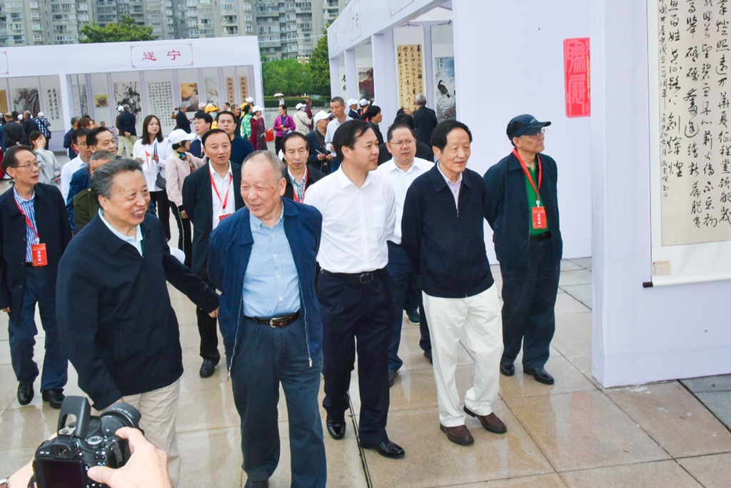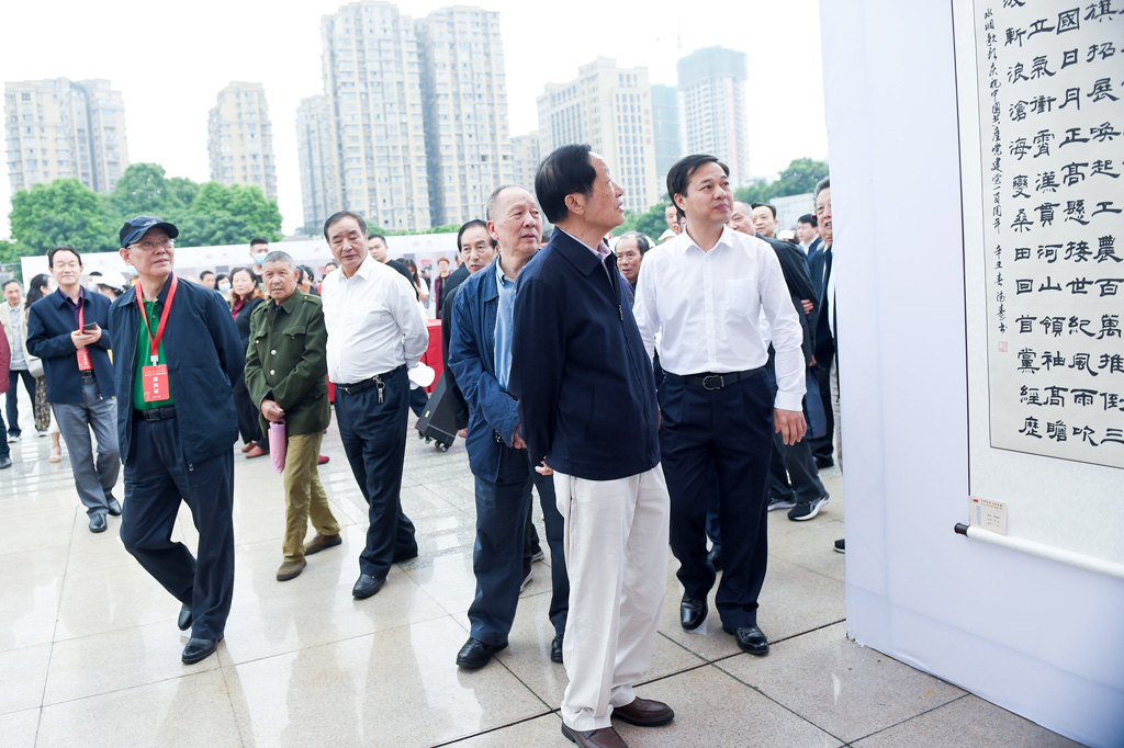 開(kāi)幕式結(jié)束后,與會(huì)同志觀摩了聯(lián)展書(shū)畫(huà)作品。