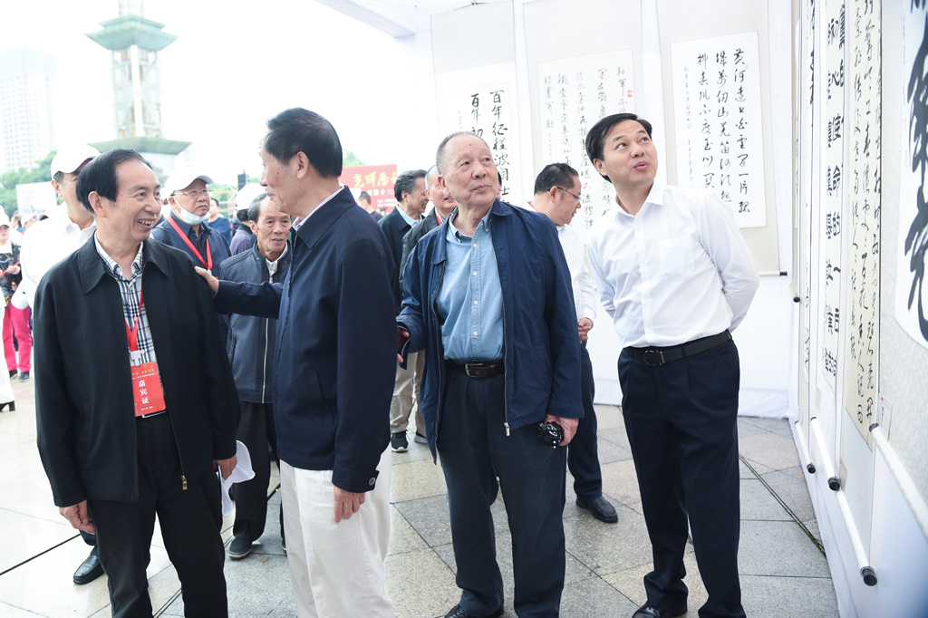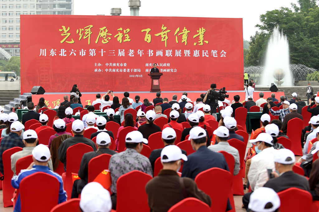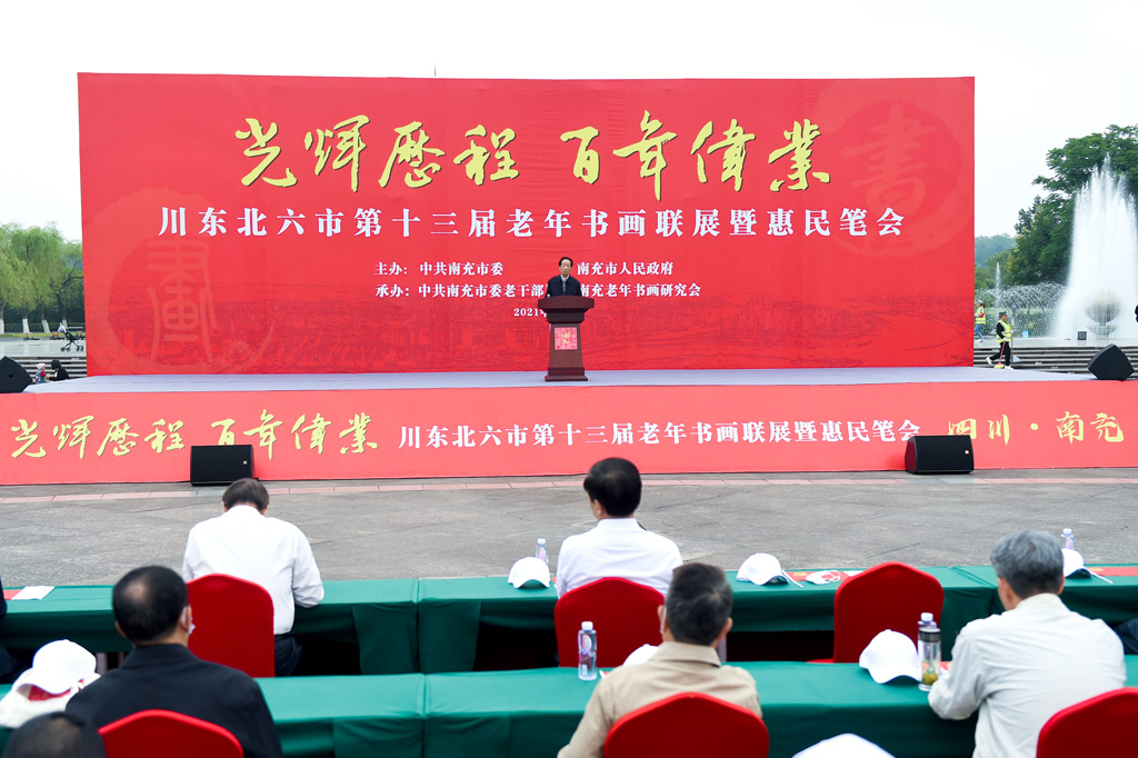 四川書(shū)法家網(wǎng)訊 5月27日上午,“光輝歷程·百年偉業(yè)”川東北六市第十三屆老年書(shū)畫(huà)聯(lián)展暨惠民筆會(huì)在南充市人民廣場(chǎng)隆重開(kāi)幕。省政府原副省長(zhǎng)、省老年書(shū)畫(huà)研究會(huì)原會(huì)長(zhǎng)徐世群,全國(guó)政協(xié)常委、省政協(xié)原副主席、農(nóng)工黨四川省委主委王正榮,省人大常委會(huì)原副主任、省老年書(shū)畫(huà)研究會(huì)原常務(wù)副會(huì)長(zhǎng)李洪仁,省軍區(qū)原副政委、少將黎明出席開(kāi)幕式。省委組織部副部長(zhǎng)、老干部局局長(zhǎng)丁成明,省委黨史研究室原主任、省老年書(shū)畫(huà)研究會(huì)會(huì)長(zhǎng)陳榮仲,省民政廳原廳長(zhǎng)、省老年書(shū)畫(huà)研究會(huì)常務(wù)副會(huì)長(zhǎng)黃明全,省商務(wù)廳原副廳長(zhǎng)、巡視員、省老年書(shū)畫(huà)研究會(huì)副會(huì)長(zhǎng)李維民,省絲綢公司原副總經(jīng)理、省老年書(shū)畫(huà)研究會(huì)副會(huì)長(zhǎng)戴朝先,眉山市委原書(shū)記、省老年書(shū)畫(huà)研究會(huì)原副會(huì)長(zhǎng)余斌,省政府辦公廳原副秘書(shū)長(zhǎng)、省老年書(shū)畫(huà)研究會(huì)原副會(huì)長(zhǎng)敖玉明,省醫(yī)藥監(jiān)督局原局長(zhǎng)、省老年書(shū)畫(huà)研究會(huì)原副會(huì)長(zhǎng)劉偉德,省老年書(shū)畫(huà)研究會(huì)原副會(huì)長(zhǎng)、執(zhí)行秘書(shū)長(zhǎng)楊成文,西嶺書(shū)畫(huà)院的部分老領(lǐng)導(dǎo)、書(shū)畫(huà)藝術(shù)家代表,南充市委常委、市政府副市長(zhǎng)伍定,南充市人大常委會(huì)副主任徐遠(yuǎn)火,南充市政協(xié)副主席黎萍,以及廣元、遂寧、廣安、達(dá)州、巴中等市老年書(shū)畫(huà)研究會(huì)的各位老領(lǐng)導(dǎo)、老同志和市委老干部局局長(zhǎng),市老干部代表出席開(kāi)幕式。徐世群宣布講話(huà)并宣布展覽開(kāi)幕,南充市委副書(shū)記古正舉致辭。
