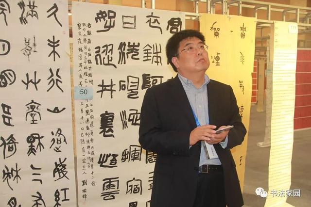 李嘯老師在書法展評審中(書法家園 資料圖片)