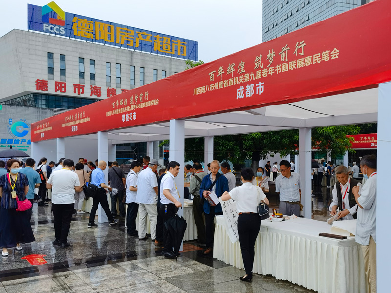 開幕式結束后,與會代表到德陽市廣電廣場觀摩了聯(lián)展書畫作品并舉辦了惠民筆會,此次筆會共送出書畫作品430幅。