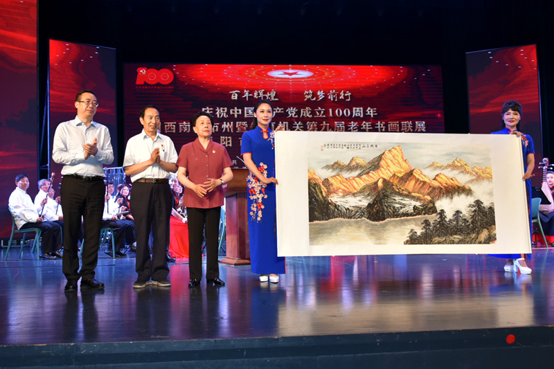 他說,這次老年書畫聯(lián)展共展出書畫作品249幅。作品主題鮮明、造詣深厚、墨韻生動,傳遞正能量、弘揚主旋律。作品體現(xiàn)了老領導、老同志深厚的文化積淀和藝術修養(yǎng),他們用滿腔熱情謳歌歷史巨變,用龍墨重彩精心描繪壯麗詩篇,為書畫愛好者提供了一次寶貴的學習交流機會;同時也展示了老領導老同志老有所學、老有所為、老有所樂的精神風貌,是川西南八市州老年朋友對中國共產黨成立100周年敬獻的一份厚禮。