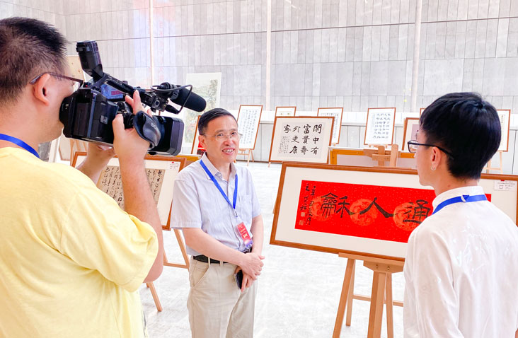 天府新區(qū)書法家協(xié)會(huì)主席王基松在向現(xiàn)場觀展的出席成都市慶祝建黨100周年主題黨日的黨員代表們深情講解到:“筆墨當(dāng)隨時(shí)代,此次展覽以翰墨禮贊建黨百年,共慶盛世華誕,天府新區(qū)的書法家們精選創(chuàng)作內(nèi)容,聚焦天府新區(qū)的創(chuàng)業(yè)精神和取得的巨大成就,飽蘸筆墨,抒情暢意,用文字和筆墨傳承紅色基因,凝聚精神力量。”