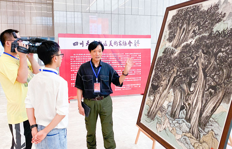 “此次展覽是天府新區(qū)美術(shù)家們第一次進(jìn)行的集中主題創(chuàng)作,大家懷揣對建黨100年來我黨取得的偉大成就的欣喜,以及我國從站起來到富起來再到強(qiáng)起來發(fā)生的翻天覆地的變化,將天府新區(qū)近年來的巨大變化匯成張張‘畫語’表達(dá)心聲。此次展覽主題突出,內(nèi)容生動(dòng),情感豐富,尺幅震撼,觀展者津津樂道,絡(luò)繹不絕。”天府新區(qū)美術(shù)家協(xié)會(huì)主席左學(xué)榮在接受成都電視臺采訪時(shí)談到。