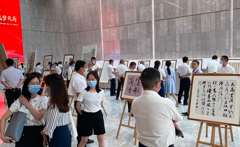 作為天府新區(qū)慶祝建黨100周年的系列活動(dòng)之一,本次展覽展出天府新區(qū)優(yōu)秀美術(shù)家、書法家、攝影家的精品力作160余幅。作品圍繞建黨100周年這一核心主題,藝術(shù)家們以歌頌黨、歌頌祖國、歌頌人民的創(chuàng)作視角,對天府新區(qū)發(fā)展風(fēng)貌、人文景觀、人居環(huán)境、人民生活等進(jìn)行精彩描繪,用筆墨和鏡頭記錄新區(qū)的快速發(fā)展,呈現(xiàn)新區(qū)自成立以來取得的不凡成就。
