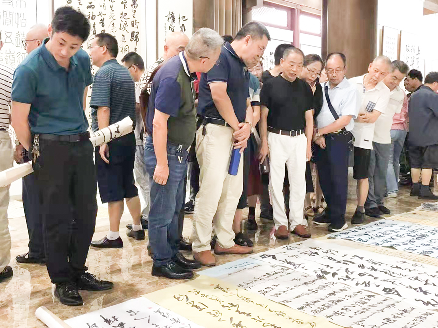 大家當(dāng)天還集體觀摩了由中國(guó)書(shū)法家協(xié)會(huì)和四川省文學(xué)藝術(shù)界聯(lián)合會(huì)共同主辦的“人間正道是滄桑——四川省書(shū)法名家書(shū)黨史優(yōu)秀作品展”(遂寧巡展)。(四川省書(shū)協(xié))