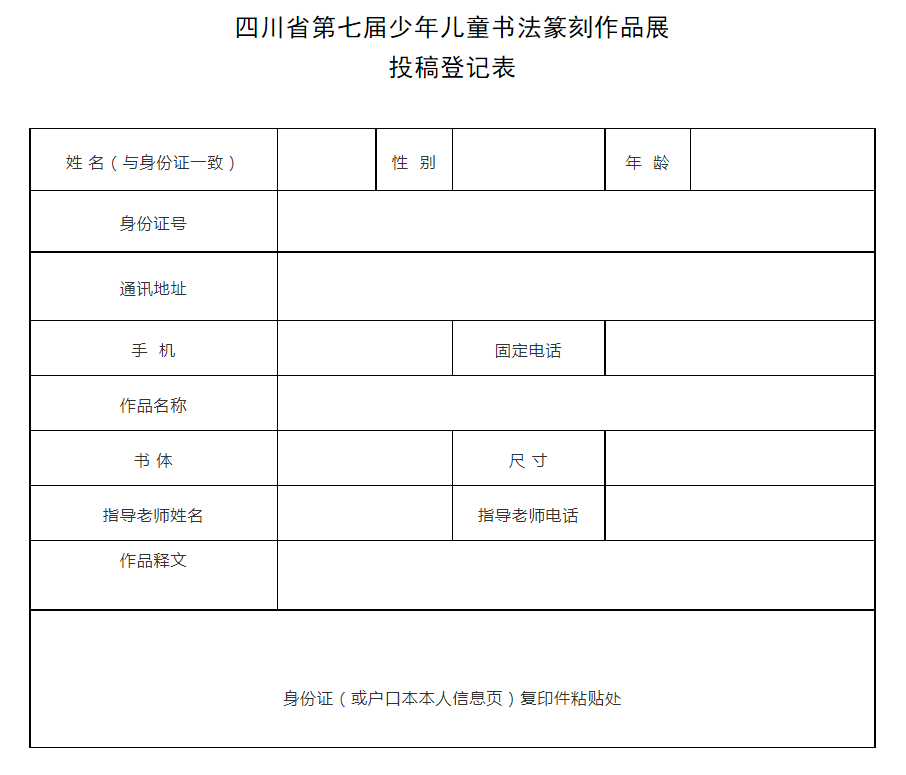 附件:《四川省第七屆少年兒童書法篆刻作品展投稿登記表》