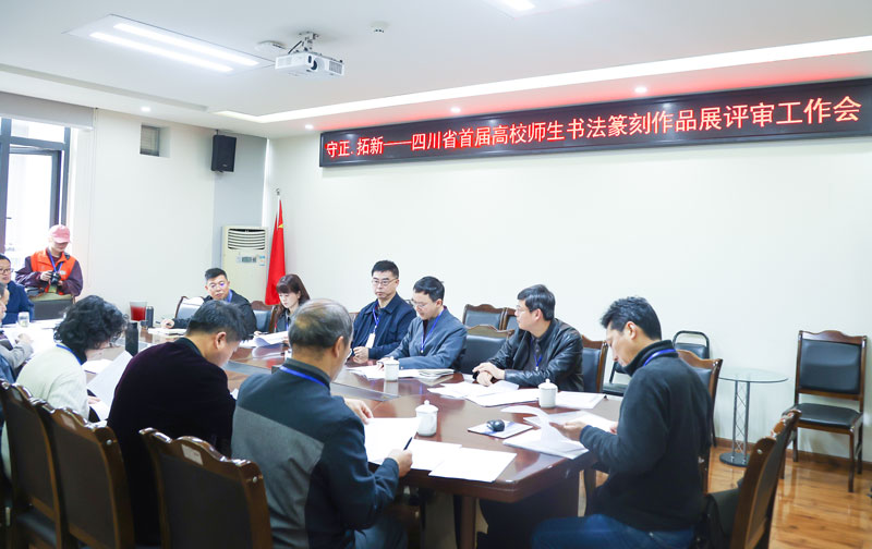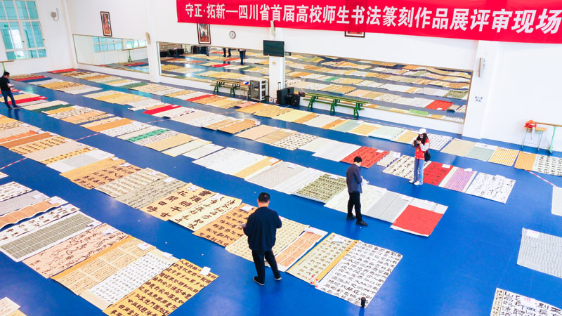 2022年4月18日,由四川省教育廳、四川省文學(xué)藝術(shù)界聯(lián)合會(huì)指導(dǎo),四川省書(shū)法家協(xié)會(huì)、四川師范大學(xué)主辦,四川師范大學(xué)美術(shù)學(xué)院·書(shū)法學(xué)院、四川省書(shū)法家協(xié)會(huì)教育委員會(huì)承辦的“守正•拓新——四川省首屆高校師生書(shū)法篆刻作品展”評(píng)審工作在四川師范大學(xué)成龍校區(qū)順利舉行。