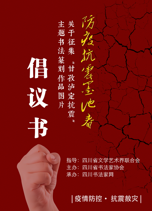 由四川省文學(xué)藝術(shù)界聯(lián)合會(huì)指導(dǎo)、四川省書法家協(xié)會(huì)主辦、四川書法家網(wǎng)承辦的“同心抗疫墨池春網(wǎng)絡(luò)展”向省內(nèi)外書壇同仁發(fā)出倡議后,我們連續(xù)收到全國藝友賜稿,并連續(xù)推出了三期作品網(wǎng)展,取得了良好反響。9月5日不幸發(fā)生甘孜州瀘定生6.8級(jí)地震,不少省內(nèi)外書壇藝友表達(dá)了對(duì)防疫抗震的共同關(guān)切,為助力四川疫情防控和抗震救災(zāi),該次網(wǎng)展根據(jù)新情況和宣傳工作需要,從第四期開始更名為“防疫抗震墨池春——2022四川省書法界防疫抗震主題書法篆刻創(chuàng)作網(wǎng)絡(luò)展”。 現(xiàn)向全國藝友和我省各市州書協(xié)骨干征集圍繞“瀘定抗震”主題的書法篆刻作品圖片(并附作品相關(guān)信息),敬請(qǐng)支持!