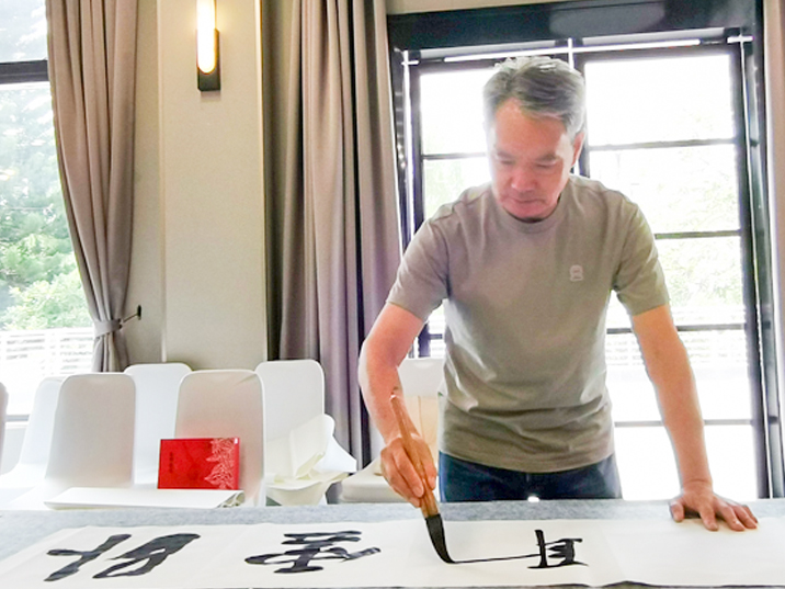 秋日暖陽(yáng)下,黑龍灘水庫(kù)水清天藍(lán),溫潤(rùn)靜美。上午,書(shū)畫(huà)家們參觀了黑龍灘陳列館。大家為十萬(wàn)大軍奮戰(zhàn)十五年終于建成黑龍?zhí)端畮?kù)的戰(zhàn)天斗地精神十分感佩。下午,他們揮毫潑墨,盡情表達(dá)對(duì)“重新安排仁壽河山”的英雄壯舉和如今已成美麗“西蜀第一海”水庫(kù)的贊美。書(shū)法有王正榮的《大美黑龍灘》、陳榮仲的《穆若清風(fēng)》、任曉春的《遇見(jiàn)桃花源》、李維民的《實(shí)事求是》、戴朝先的《清風(fēng)竹影》、范紹全的《云淡風(fēng)輕》、徐德松的《業(yè)精于勤》、張水戰(zhàn)的《見(jiàn)賢思齊》;山水畫(huà)有魏明成的《大美黑龍灘》,王正榮為畫(huà)題款。一下午共創(chuàng)作了70多幅書(shū)畫(huà)作品贈(zèng)與黑龍灘管理處。