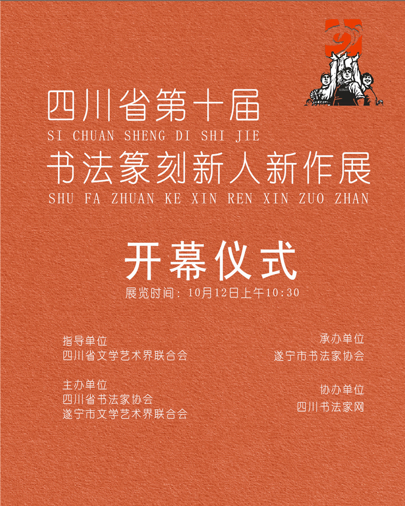 由四川省文學(xué)藝術(shù)界聯(lián)合會(huì)指導(dǎo),四川省書(shū)法家協(xié)會(huì)、遂寧市文學(xué)藝術(shù)界聯(lián)合會(huì)主辦,遂寧市書(shū)法家協(xié)會(huì)承辦的“四川省第十屆書(shū)法篆刻新人新作展”將于10月12日上午10:30在文軒美術(shù)館(成都高新區(qū)新會(huì)展中心南側(cè)時(shí)尚天街南口208-1-1號(hào))舉行開(kāi)幕儀式。該展全面展示了我省書(shū)法篆刻新人在繼承弘揚(yáng)中華優(yōu)秀文化傳統(tǒng)、賡續(xù)中華文脈基礎(chǔ)上的整體創(chuàng)作水平和藝術(shù)成績(jī),共計(jì)展出優(yōu)秀、入展作品176件(其中優(yōu)秀作品30件、入展作品146件)。