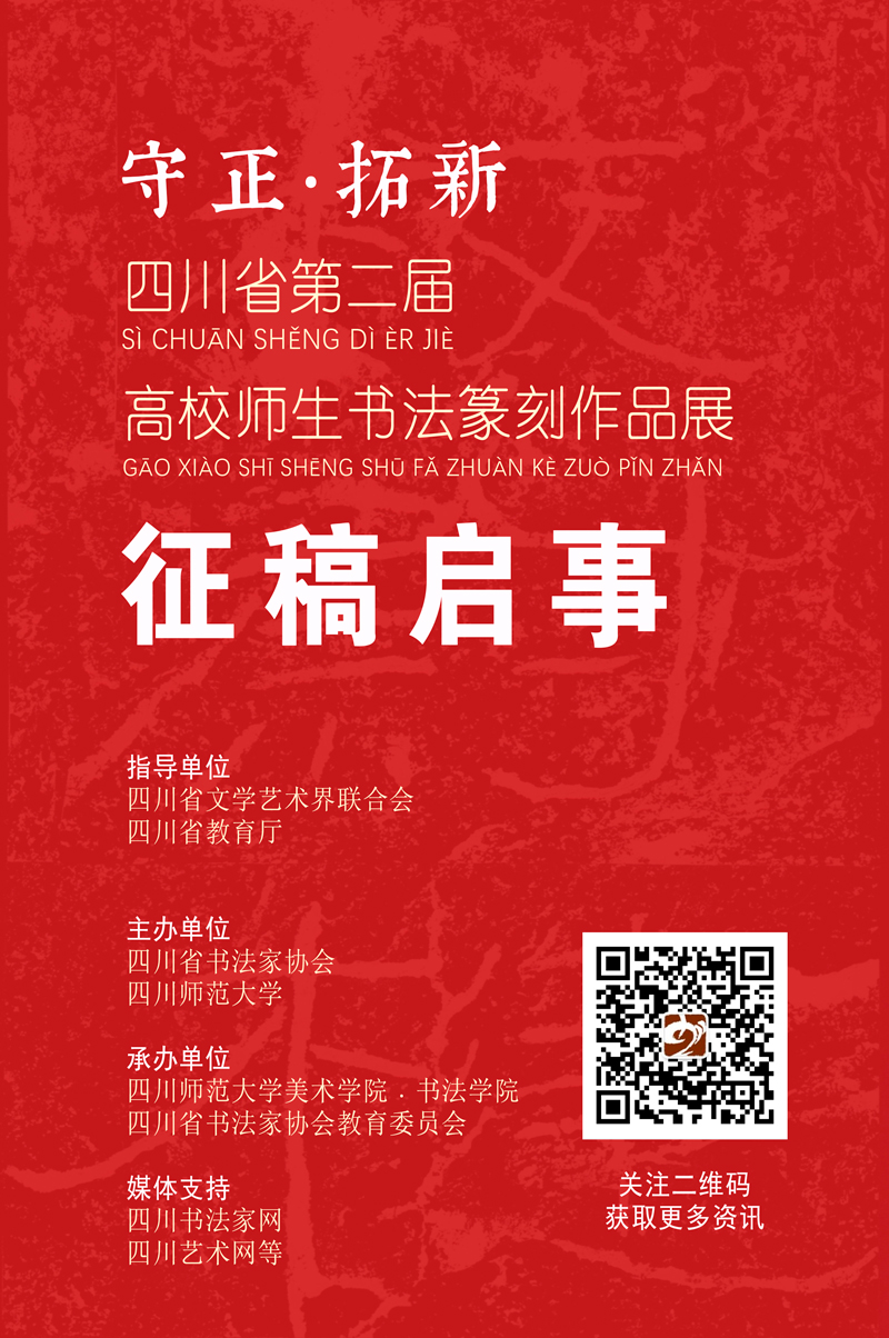 為深入貫徹落實(shí)黨的二十大精神和習(xí)近平來川視察重要指示精神,全面踐行習(xí)近平新時(shí)代中國(guó)特色社會(huì)主義思想和習(xí)近平文化思想;充分展示四川高教戰(zhàn)線精神面貌,展示四川高校師生的使命擔(dān)當(dāng),積極投身社會(huì)主義文化強(qiáng)國(guó)建設(shè),力爭(zhēng)在培根鑄魂上展現(xiàn)新?lián)?dāng),在守正創(chuàng)新上實(shí)現(xiàn)新作為,在明德修身上煥發(fā)新風(fēng)貌,用自強(qiáng)不息、厚德載物的文化創(chuàng)造,展示巴蜀文藝新氣象,開拓四川文藝新境界,共同鑄就中華文化新輝煌;充分發(fā)揮大學(xué)教育的引領(lǐng)作用,全面助推學(xué)校美育工作和四川藝術(shù)教育事業(yè),以書法、篆刻藝術(shù)為著力點(diǎn),努力提升高校師生的傳統(tǒng)文化修養(yǎng)和審美素養(yǎng),大力促進(jìn)高校書法教育事業(yè)發(fā)展和廣大師生學(xué)習(xí)書法的熱情,多出成果,多出人才,進(jìn)一步推動(dòng)四川高校書法學(xué)科建設(shè),由四川省書法家協(xié)會(huì)聯(lián)合四川師范大學(xué),擬舉辦“守正·拓新——四川省第二屆高校師生書法篆刻作品展”?,F(xiàn)將有關(guān)事項(xiàng)公布如下: