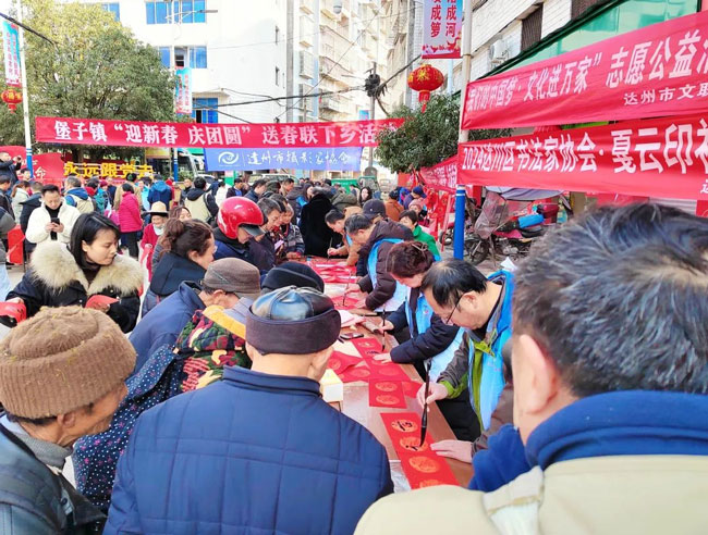 四川書法家網(wǎng)訊 為傳承中華優(yōu)秀傳統(tǒng)文化,共迎新春佳節(jié),2024年1月以來,根據(jù)中共達(dá)州市達(dá)川區(qū)委宣傳部的要求,按照達(dá)州市達(dá)川區(qū)文聯(lián)的具體安排,達(dá)川區(qū)書法家協(xié)會(huì)2024“萬福迎春”公益活動(dòng)先后走進(jìn)堡子鎮(zhèn)、石橋鎮(zhèn)、嘎云社區(qū)、趙家鎮(zhèn)、天益廣場(chǎng)、新南社區(qū)、仙鶴廣場(chǎng)、趙家鎮(zhèn)敬老院、通達(dá)社區(qū)、達(dá)州客運(yùn)南站等十個(gè)點(diǎn)位,開展了十場(chǎng)次公益活動(dòng)。
