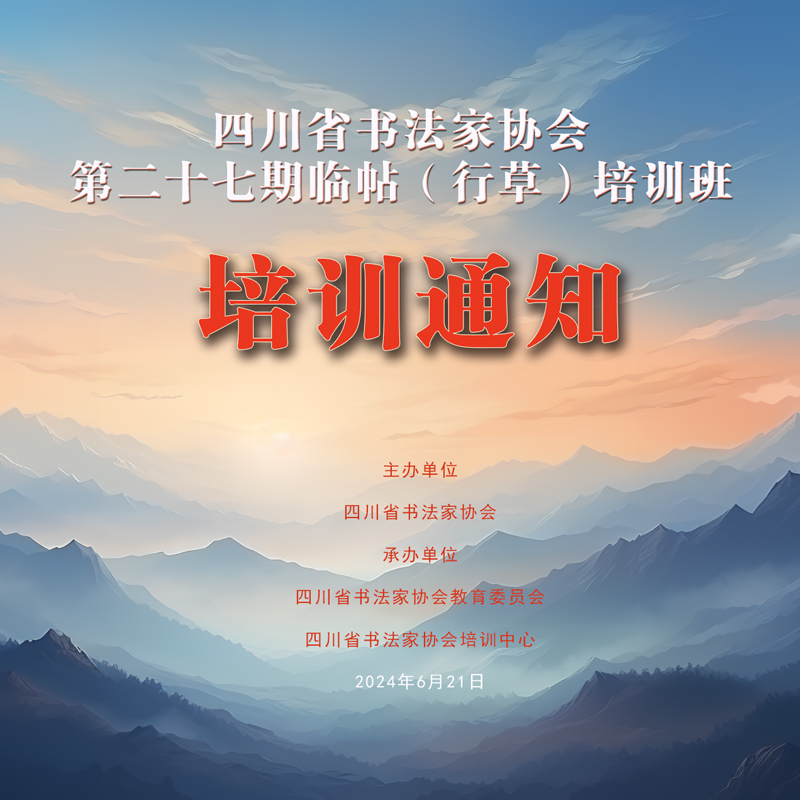 為提升我省行草書法作者的臨帖與創(chuàng)作水平,培養(yǎng)植根傳統(tǒng)、守正出新、技道均衡、藝文兼?zhèn)涞臅鴮懻?,?jīng)四川省書法家協(xié)會研究,決定于2024年7月30日至8月4日,在成都市舉辦四川省書法家協(xié)會第二十七期臨帖(行草)培訓班。現(xiàn)將有關事項通知如下。