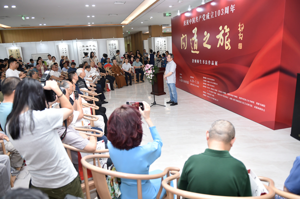 陶武先宣布展覽開幕,楊曉陽、王道義、舒炯、王興國先后致詞,唐樹良代表舒門弟子發(fā)言。