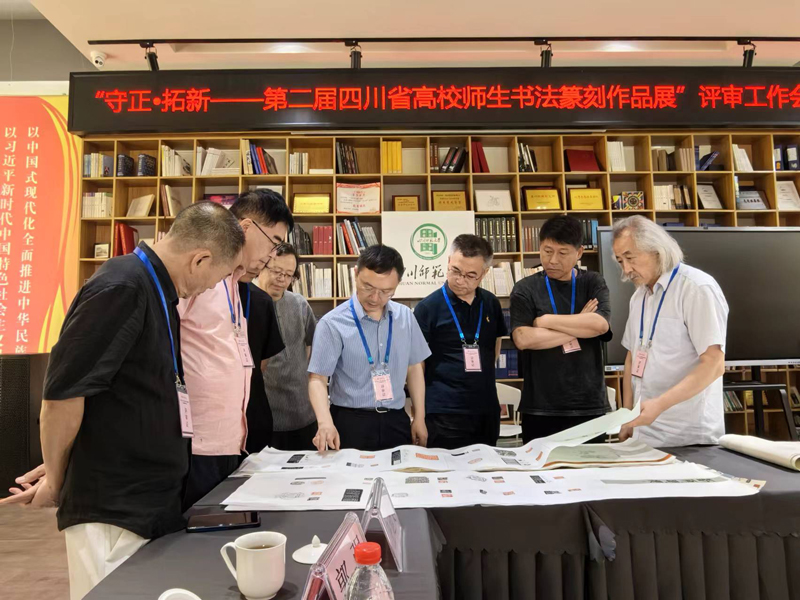 2024年7月2日,由四川省教育廳、四川省文學(xué)藝術(shù)界聯(lián)合會(huì)指導(dǎo),四川省書(shū)法家協(xié)會(huì)、四川師范大學(xué)主辦,四川師范大學(xué)美術(shù)學(xué)院·書(shū)法學(xué)院、四川省書(shū)法家協(xié)會(huì)教育委員會(huì)承辦的“守正•拓新——四川省第二屆高校師生書(shū)法篆刻作品展”評(píng)審工作在四川師范大學(xué)成龍校區(qū)順利舉行。