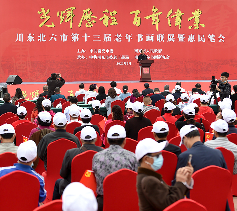 四川書法家網(wǎng)訊 5月27日上午,“光輝歷程·百年偉業(yè)”川東北六市第十三屆老年書畫聯(lián)展暨惠民筆會(huì)在南充市人民廣場(chǎng)隆重開幕。