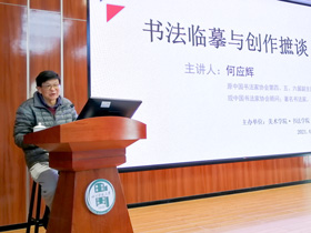 四川書法家網(wǎng)訊??? 4月2日,中國書協(xié)顧問、四川省書協(xié)名譽(yù)主席、著名書法家何應(yīng)輝應(yīng)邀為四川師范大學(xué)(成龍校區(qū))美術(shù)學(xué)院·書法學(xué)院作了題為《書法臨摹與創(chuàng)作摭談》專題學(xué)術(shù)講座。