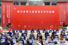 四川書法家網(wǎng)訊 12月18日,大千故里,群賢畢至,在全省廣大篆刻作者的期盼之中,由四川省文學(xué)藝術(shù)界聯(lián)合會指導(dǎo),四川省書法家協(xié)會主辦的四川省第七屆篆刻藝術(shù)展在張大千美術(shù)館廣場隆重開幕。