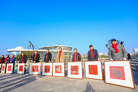 1月11日,由中共遂寧市委宣傳部、遂寧市河?xùn)|新區(qū)管理委員會、遂寧市文學(xué)藝術(shù)界聯(lián)合會、民建遂寧市委員會主辦,綠地集團(tuán)遂寧置業(yè)有限公司、遂寧市河?xùn)|新區(qū)社會事業(yè)與群眾工作局、遂寧市書法家協(xié)會承辦的2020“百福迎春”書法展開幕式在臨仙閣舉行