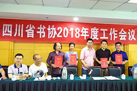四川書法家網(wǎng)訊??5月16日,四川省書法家協(xié)會2018年工作會在成都召開。省書協(xié)主席戴躍,副主席王家葵、王道義、劉健、林嶠、洪厚甜、鐘顯金、黃澤江、龔曉臏以及四川省各地市州書協(xié)負責人出席會議。