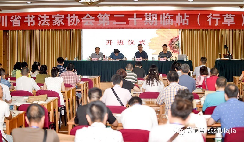 四川書法家網(wǎng)訊 8月3日,四川省書法家協(xié)會第二十期臨帖(行草)班在成都福德酒店開班。中國書協(xié)顧問、四川省書協(xié)主席何應(yīng)輝出席開班儀式并作了《書法傳統(tǒng)的兩大系統(tǒng)和當(dāng)代創(chuàng)作》專題講座。四川省書協(xié)常務(wù)副主席兼秘書長、創(chuàng)作委員會常務(wù)副主任戴躍,四川省書協(xié)副主席、行草書委員會主任何開鑫,四川省書協(xié)副主席、教育委員會主任、培訓(xùn)中心主任林嶠,培訓(xùn)中心副主任王道義、冷柏青,培訓(xùn)班導(dǎo)師湯文俊、楊江帆、謝興華、王堂兵、李在兵和120名學(xué)員一道聆聽了何主席的專題講座。開班儀式由戴躍主持。