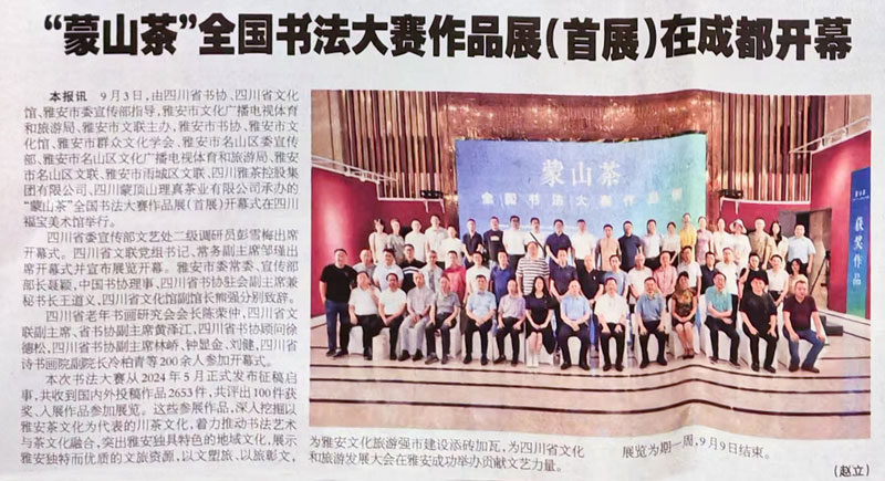 書法導(dǎo)報:“蒙山茶”全國書法大賽(首展)在成都開幕