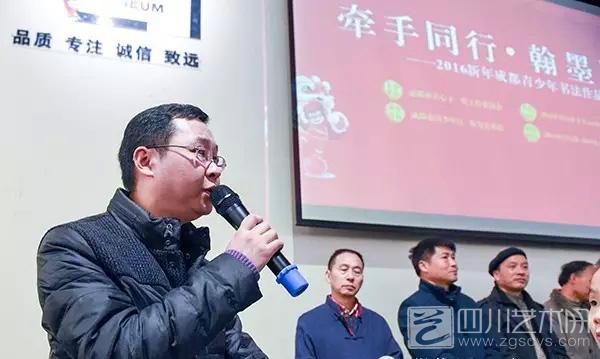 成都市青少年宮書法部副部長王驥在開幕式上致辭