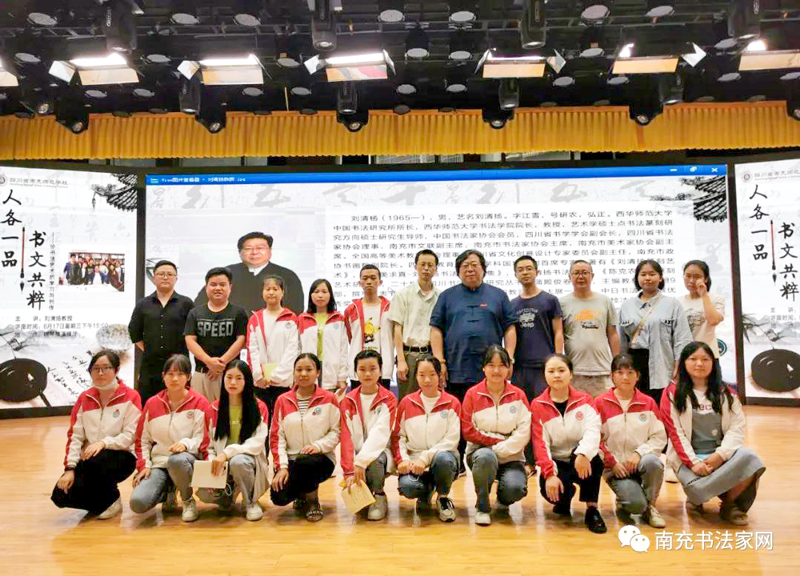 四川書法家網(wǎng)訊 6月17日下午,南充市書協(xié)主席、西華師大書法學(xué)院院長(zhǎng)劉清揚(yáng)教授在南充師范學(xué)校作“人各一品,書文共粹——論書法藝術(shù)的學(xué)習(xí)與創(chuàng)作”主題講座。南充師范學(xué)校劉清揚(yáng)名師工作室成員、學(xué)校書畫篆刻協(xié)會(huì)的全體會(huì)員及部分愛好書法篆刻藝術(shù)的青年教師聆聽了講座。講座時(shí)長(zhǎng)兩小時(shí)、現(xiàn)場(chǎng)氣氛熱烈、大家收獲頗豐。