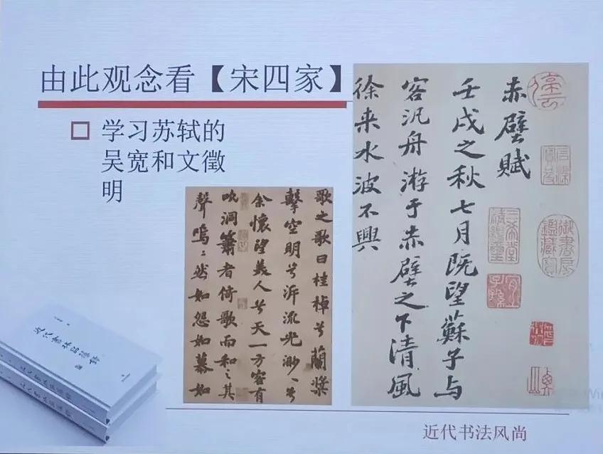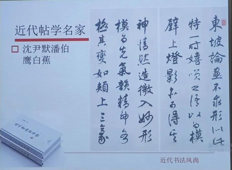接著,王老師為大家介紹了沈尹默、潘伯鷹、白蕉等近代帖學(xué)名家的作品,并從學(xué)術(shù)考證的角度為大家分析沈尹默題簽案。