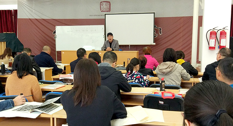 此次培訓(xùn)由中國書法家協(xié)會(huì)會(huì)員、四川省書法家協(xié)會(huì)理事、德陽市書法家協(xié)會(huì)主席、市文化藝術(shù)中心主任唐笑天授課。唐老師就書法的基本認(rèn)識(shí)、書寫工具的準(zhǔn)備、字帖選擇和用筆基礎(chǔ)知識(shí)進(jìn)行了專題講座。