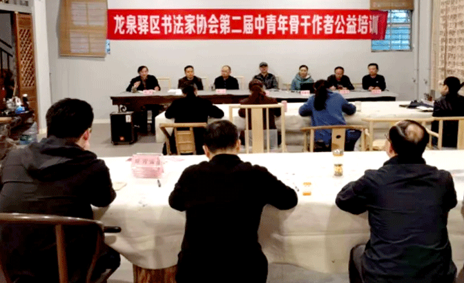 接下來由龍泉驛區(qū)文聯(lián)副主席左文峰致辭,左主席講到龍泉驛區(qū)是成都東進(jìn)戰(zhàn)略的橋頭堡,成渝經(jīng)濟(jì)交融的核心區(qū)域,區(qū)委區(qū)政府高度重視文化浸潤(rùn)人民,特別是書法文化潤(rùn)民,希望入選參加培訓(xùn)的各位學(xué)員認(rèn)真學(xué)習(xí),努力打造精品,為龍泉驛區(qū)文化繁榮作出自己的貢獻(xiàn)。