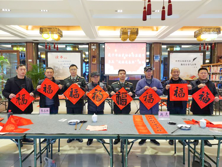 為傳承中華優(yōu)秀傳統(tǒng)文化,弘揚(yáng)社會(huì)主義核心價(jià)值觀,傳播書(shū)法之美,提升文化自信,滿足廣大人民群眾的文化生活需求,營(yíng)造幸福祥和的春節(jié)氛圍,2月3日,正值新春的第一個(gè)節(jié)氣一一立春,下午四點(diǎn),遂寧市書(shū)法家協(xié)會(huì)"送福送春聯(lián)"活動(dòng)走進(jìn)了遂寧軍分區(qū),濃墨重彩書(shū)寫(xiě)春聯(lián)和"福"字,為軍分區(qū)的官兵送上了新春的美好祝福!