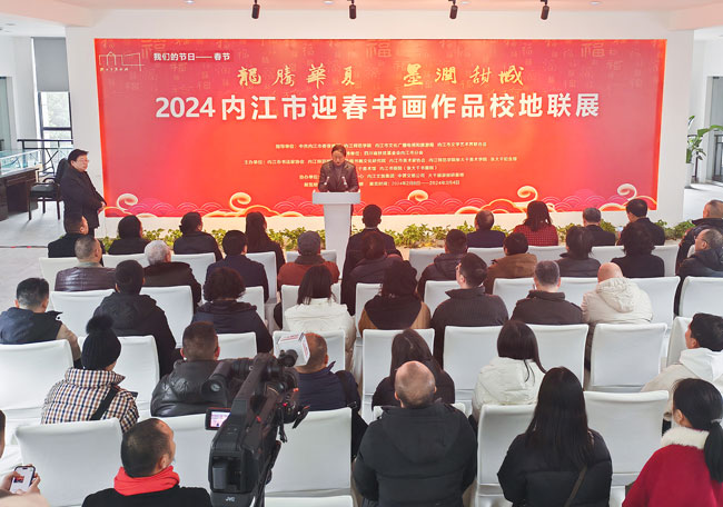 四川書法家網(wǎng)訊 2月6日,2024內(nèi)江市迎春書畫作品校地聯(lián)展在張大千美術(shù)館展出。
