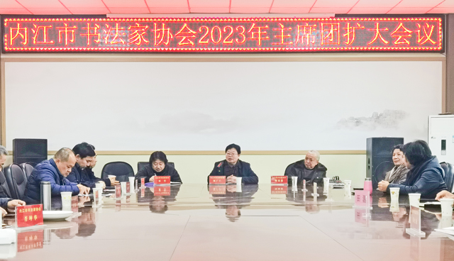 四川書法家網(wǎng)訊 2月6日,內(nèi)江市書法家協(xié)會2024年工作主席團(tuán)(擴(kuò)大會議)在張大千美術(shù)館二樓多功能會議室召開,市文聯(lián)副主席、市書協(xié)主席、內(nèi)江書畫院(張大千書畫院)執(zhí)行院長陳廣仁,市書協(xié)副主席兼秘書長劉柱,副主席陶進(jìn)超、曾國武、霍祥界、楊燕剛、陳亮,市書協(xié)主席團(tuán)(擴(kuò)大會議)成員閔德斌、鄭紅楊、冉麗雙、葉自明、田源、申朝明、陳科學(xué)、劉翠華等市各縣(市、區(qū))書協(xié)主席以及東林書社、漢安印社、女子書社等負(fù)責(zé)人參加會議。