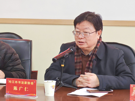 陳廣仁介紹了2024年工作構(gòu)想: 一是強(qiáng)化組織建設(shè),提高政治站位。增強(qiáng)文化自覺與自信,努力踐行黨的文藝工作方針,積極完成上級組織交辦的任務(wù);二是創(chuàng)新思路、加強(qiáng)工作協(xié)調(diào)。主動爭取領(lǐng)導(dǎo)和各界支持,堅(jiān)持為有不為,“變無米之炊為有米下鍋”;三是堅(jiān)持以創(chuàng)作為導(dǎo)向,爭出更多精品力作。一抓骨干隊(duì)伍,二抓預(yù)備隊(duì)培養(yǎng)選拔,三抓書法基礎(chǔ)普及;四是以展促創(chuàng),量力辦展賽。擬結(jié)合慶祝建國75周年,舉辦龍年第二屆內(nèi)江市優(yōu)秀會員作品展,舉辦首屆內(nèi)江市書法·篆刻·刻字作品展,選擇川渝地市區(qū)舉辦1至2次交流展或赴蓉匯報(bào)展;五是加強(qiáng)隊(duì)伍建設(shè),增加會員歸屬感和榮譽(yù)感。開展自家會員摸底調(diào)查,加強(qiáng)對基層書協(xié)的聯(lián)系與指導(dǎo);六是加強(qiáng)宣傳工作,擴(kuò)大內(nèi)江書協(xié)影響力。借助媒體平臺,注重活動宣傳,名家宣傳,典型宣傳。