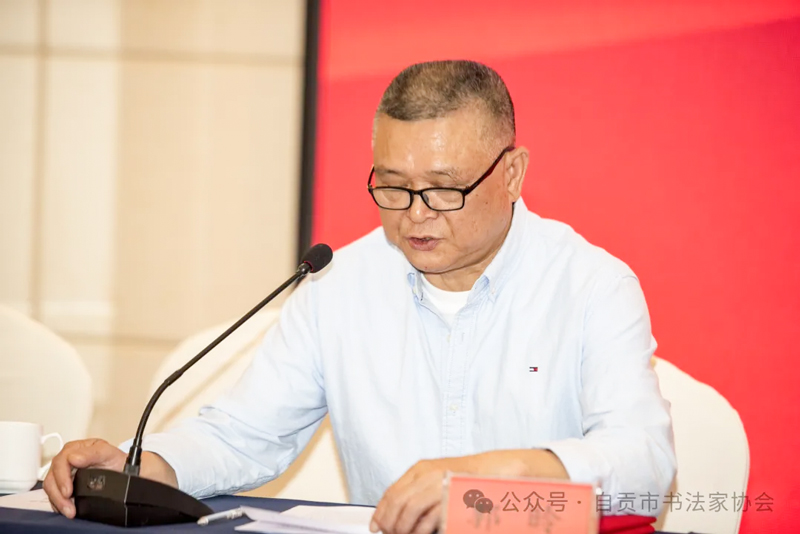 會(huì)議主持人、自貢書協(xié)常務(wù)副主席楊任堅(jiān)傳達(dá)學(xué)習(xí)了全國(guó)宣傳部長(zhǎng)會(huì)議、中國(guó)文聯(lián)十四屆四次全委會(huì)會(huì)議、四川省書法家協(xié)2023年工作會(huì)議精神。自貢書協(xié)主席郭昤代表理事會(huì)作工作報(bào)告。