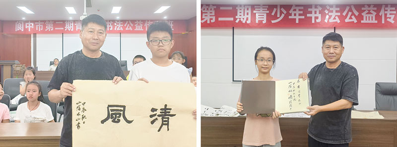 為培養(yǎng)學生良好的書寫習慣,磨練品德意志,提高審美水平,8月24日至 25日,由閬中市總工會、市文聯、市團委、市書法家協會指導,閬中市青少年書畫學會主辦的“第二期青少年書法傳習班”在閬中舉辦。中國書法家協會理事、四川省書法家協會副主席林嶠,南充市書法家協會理事、閬中市青少年書畫學會會長文頂銘為傳習班授課。