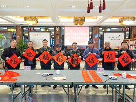 四川書(shū)法家網(wǎng)訊 遂寧市書(shū)法家協(xié)會(huì)"送福送春聯(lián)"活動(dòng)走進(jìn)了遂寧軍分區(qū),濃墨重彩書(shū)寫(xiě)春聯(lián)和"福"字,為軍分區(qū)的官兵送上了新